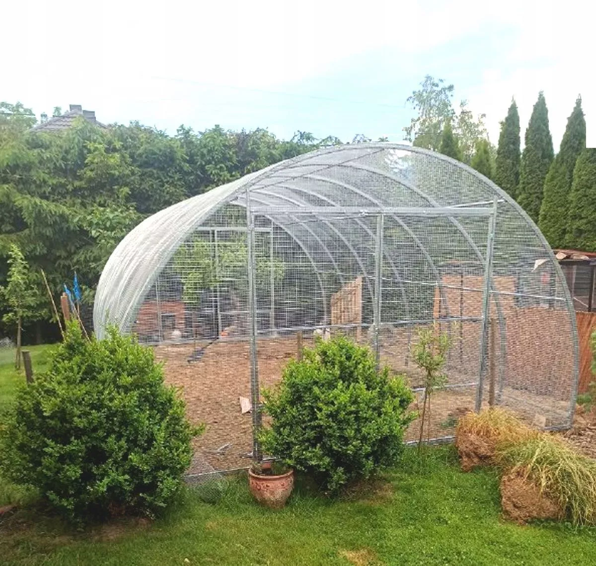 Díky pevné a bezúdržbové pozinkované konstrukci je tato samostatně stojící voliéra s dveřmi na mimořádně odolných pantech navržena tak, aby vydržela opravdu mnoho. Je tak pevná, že unese dokonce i osobu visící ze střechy.